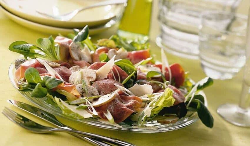 Carpaccio van rookvlees met champignons