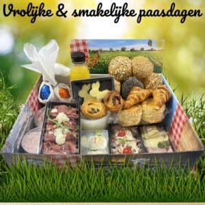 Goedgevulde Paasbrunchbox voor twee personen voor € 49,50.